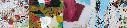 Showcasing diverse abstract paintings by four Boulder artists: