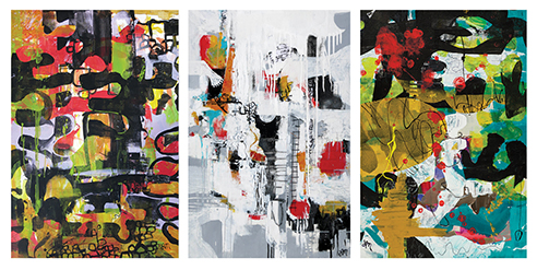 Showcasing diverse abstract paintings by four Boulder artists: